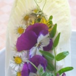 Chicoree-Blätter waschen, trocknen, jeweils 2 TL Frischkäse in die Mitte drücken, gewaschene Blüten hineindrücken – fertig ist der Genuß!